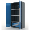 Подробнее »Металлический инструментальный шкаф серии Premium. Комплектация: оцинкованные широкие полки - 3 шт., блок из 3-х широких ящиков. Габаритные размеры ШхГхВ: 1000х500х1950 мм.